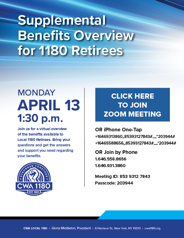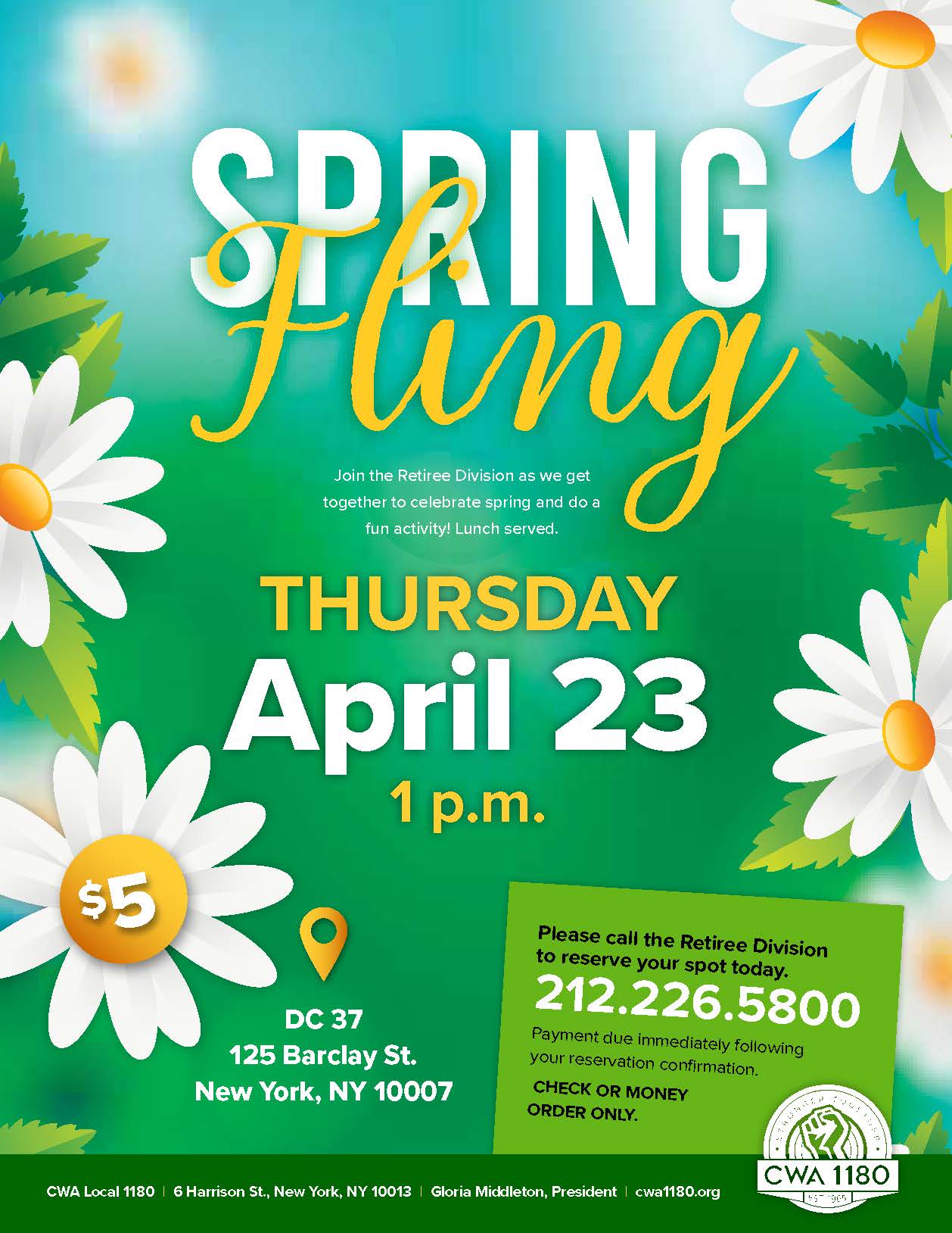 Call the Retiree Division to reserve your spot today: 212.226.5800